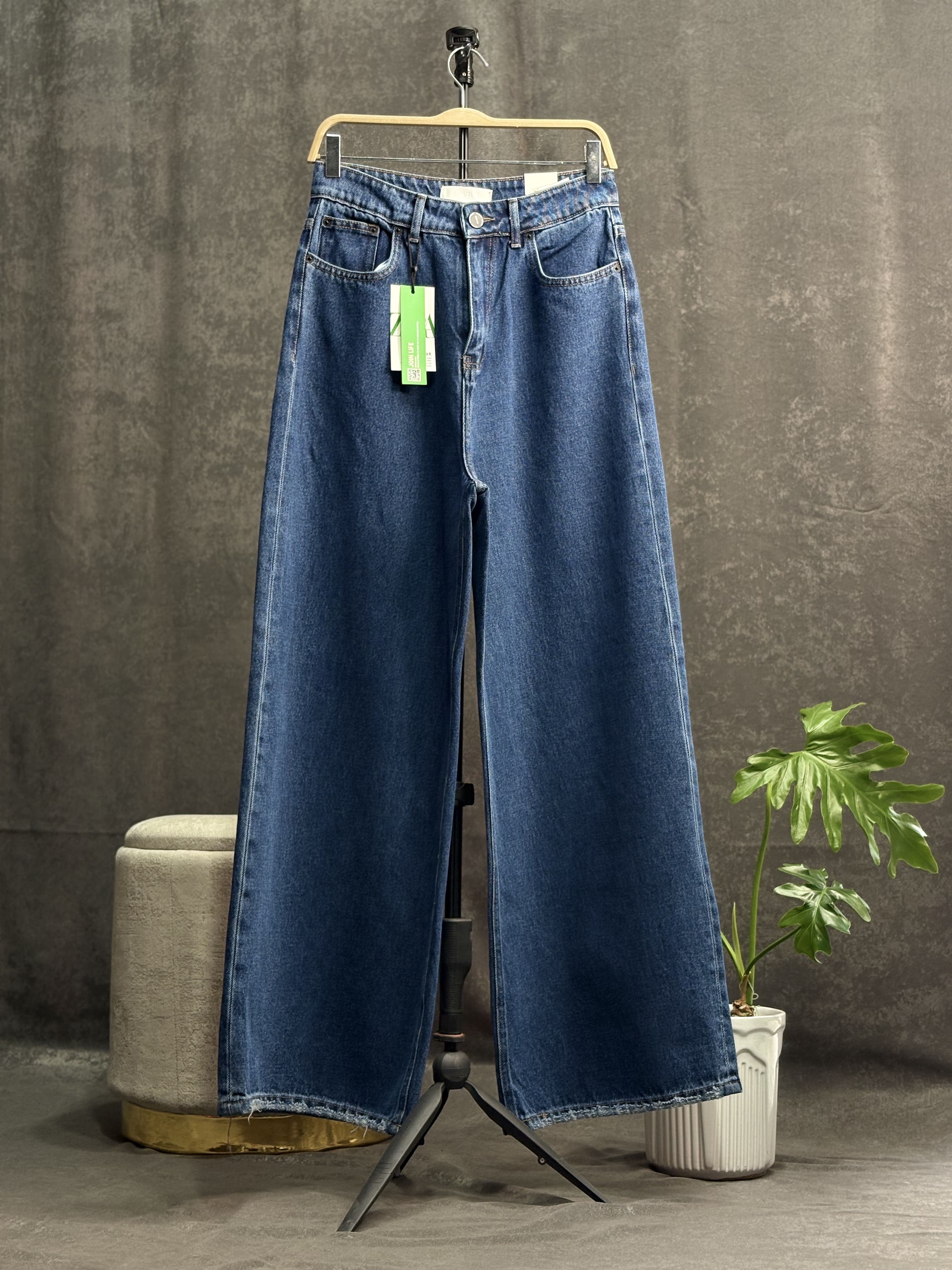 شلوار جین نیم بگ سرمه ای طرح زاپ کد ۱۰۱۲