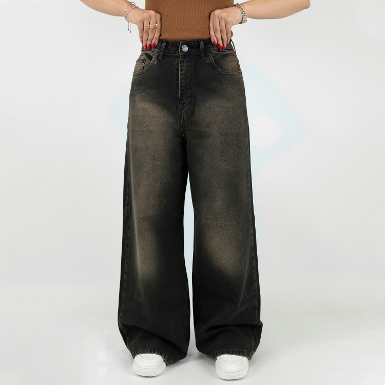 شلوار فول بگ زنانه رنگ ذغالی - استایل آزاد و خاص برای خانوم های مدرن