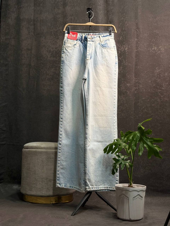 شلوار نیم بگ آبی یخی و ذغالی ترکیبی | کد 1006
